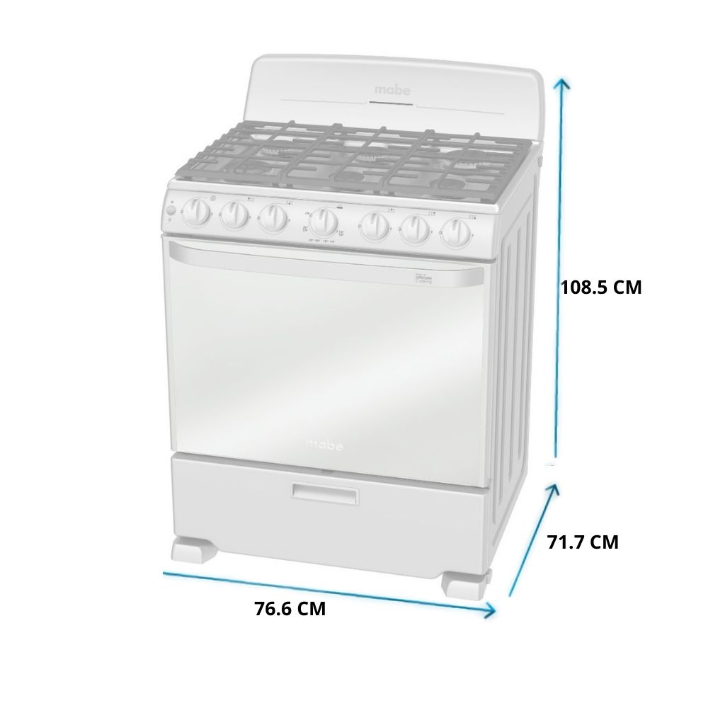 Estufa Mabe de 30″ 6 quemadores de Acero Inoxidable con respaldo