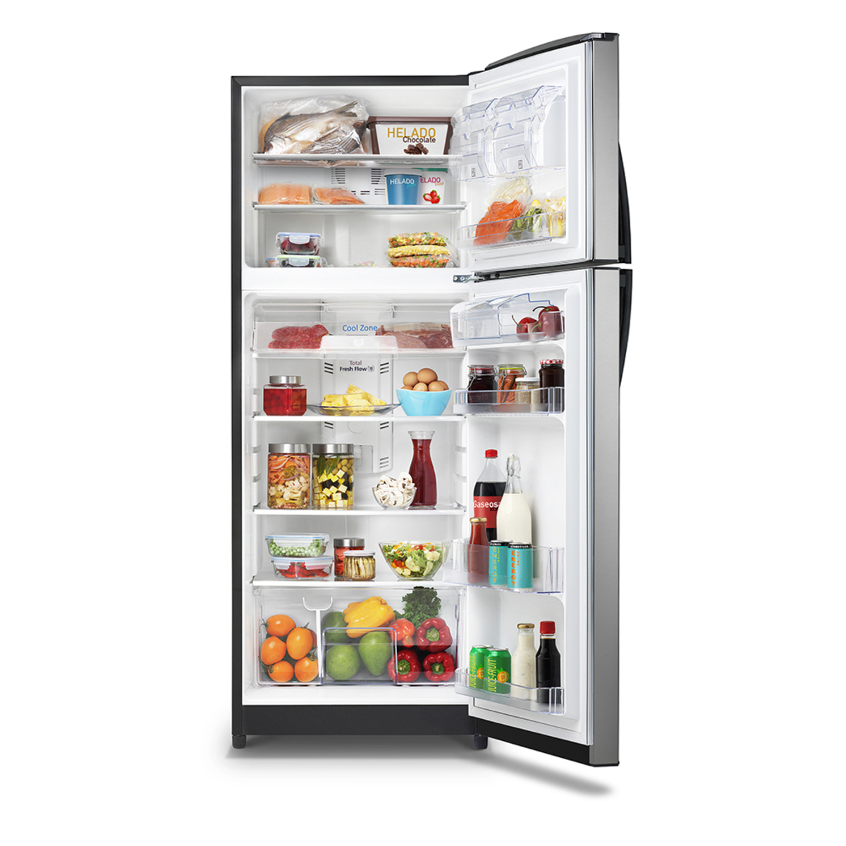 Refrigeradora RMP435FZNU de la marca MABE cuenta con un diseño con Congelador superior 2 puertas y capacidad de 14 pies cúbicos, además posee 3 estantes para que puedas organizar tu espacio de la mejor manera, adquiere lo mejor en línea blanca